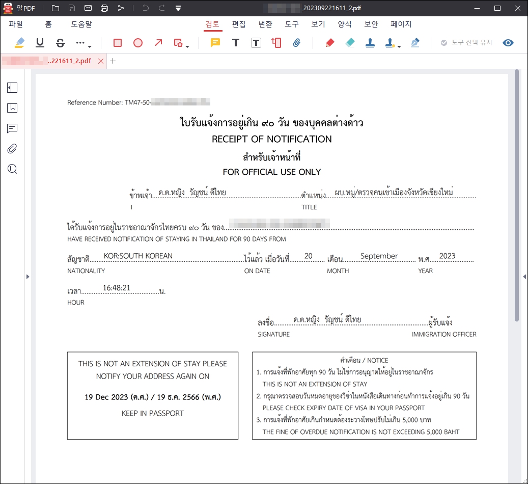 태국 90일 신고 온라인 신청 방법