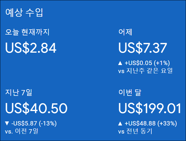 상황이 이렇게 되었는데도 여전히 해당 블로그에서는 꾸준한 수익이 발생하고 있습니다. 오늘이 5월 30일이니, 오늘 오후와 내일 까지 합한다면 이번달에도 역시 200달러를 무사히 넘겨서 다음 달에 입금이 될 예정이고요.